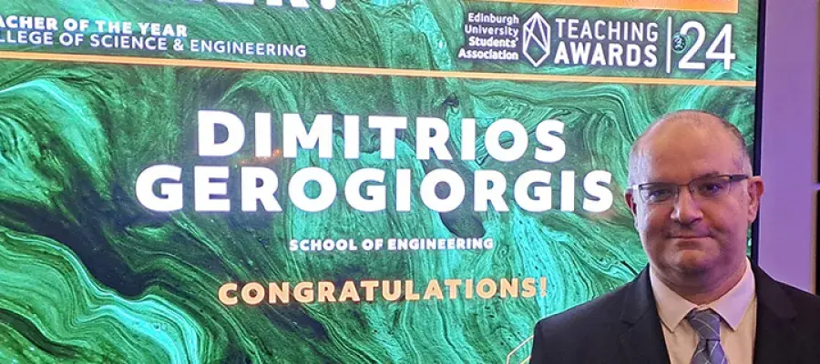 Read about the latest news and research from the School of Engineering. Visit our blog site to hear stories from our students, staff, alumni and networks. If you are a staff member, student or graduate with news to share, please get in touch at news.eng@ed.ac.uk. News listing Search Tags BioengineeringChemical EngineeringCivil and Environmental EngineeringElectronics and Electrical EngineeringEnergy SystemsGeneral EngineeringImaging, Data and CommunicationsInfrastructure and EnvironmentIntegrated Micro and Nano SystemsMaterials and ProcessesMechanical EngineeringMultiscale ThermofluidsSustainability Publication date Date from Date to Engineering Principles 1 students reach Design Challenge final 27 June, 2024Chemical Engineering Four 1st year engineering students have reached the grand final of the Engineering for People… Dr Francisco Garcia Garcia wins award for carbon capture innovation 20 June, 2024Sustainability Dr Francisco Garcia Garcia has received a prestigious award for his work on carbon capture… Research staff appointed to explore key engineering challenges 19 June, 2024Chemical Engineering Sustainability The School has appointed the following staff to key research roles, where they will work on… Offshore renewable energy partnership wins Research Impact Prize 07 June, 2024Energy Systems Sustainability Professor Markus Mueller and Dr Joseph Burchell have been awarded as joint winners for the… FloWave celebrates tenth anniversary 13 May, 2024General Engineering Energy Systems Sustainability The FloWave Ocean Energy Research Facility has accelerated ocean technology for over a decade,… Engineering student wins Undergraduate of the Year 10 May, 2024Electronics and Electrical Engineering Ozlem Kesgin, who is studying electronics and electrical engineering, has won Undergraduate of the… Dr Yabin Liu recognised as green energy industry trailblazer 30 April, 2024Mechanical Engineering Energy Systems Sustainability Dr Yabin Liu has won a Scottish Renewables Young Professionals Green Energy Award for his work on… Outreach impact celebrated at rail industry event 29 April, 2024Civil and Environmental Engineering Leaders from industry, education and government joined us to discuss findings by our partner,… Engineering staff success at Teaching Awards 29 April, 2024Chemical Engineering Materials and Processes Dr Dimitrios Gerogiorgis has been recognised in this year’s Teaching Awards, winning the Teacher of… Professor Lindsay Beevers named Royal Society of Edinburgh Fellow 10 April, 2024Civil and Environmental Engineering Infrastructure and Environment Professor Lindsay Beevers has been elected a Fellow of the Royal Society of Edinburgh (FRSE).… … 2 3 4 5 6 7 8 9 10 This article was published on 2024-09-10